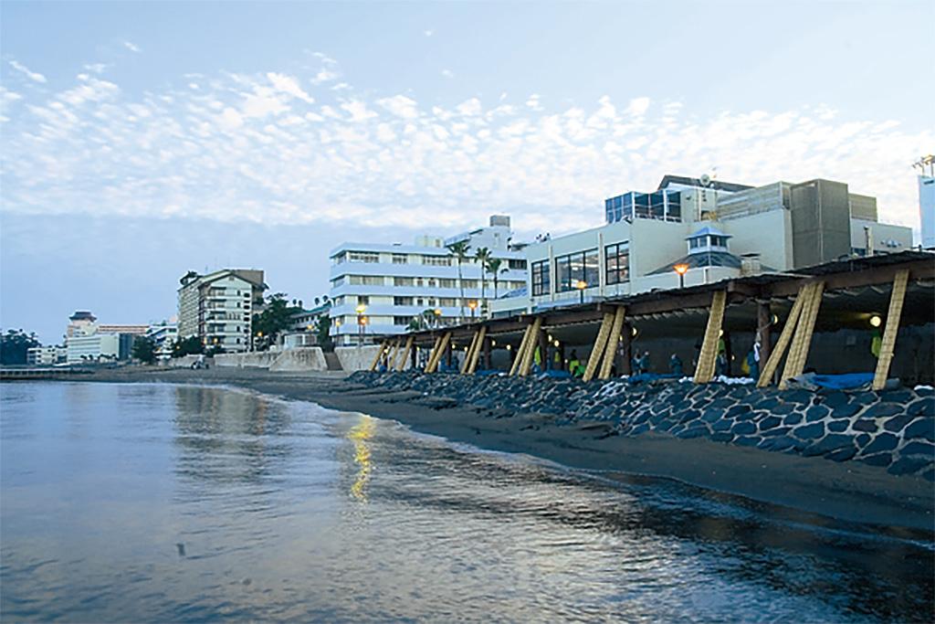 摺ヶ浜温泉、弥次ヶ湯温泉、二月田温泉などの温泉群からなり、県内有数の観光地です。摺ヶ浜海岸の高温自然湧出温泉、天然砂むし温泉は指宿の温泉の代名詞とも言えます。