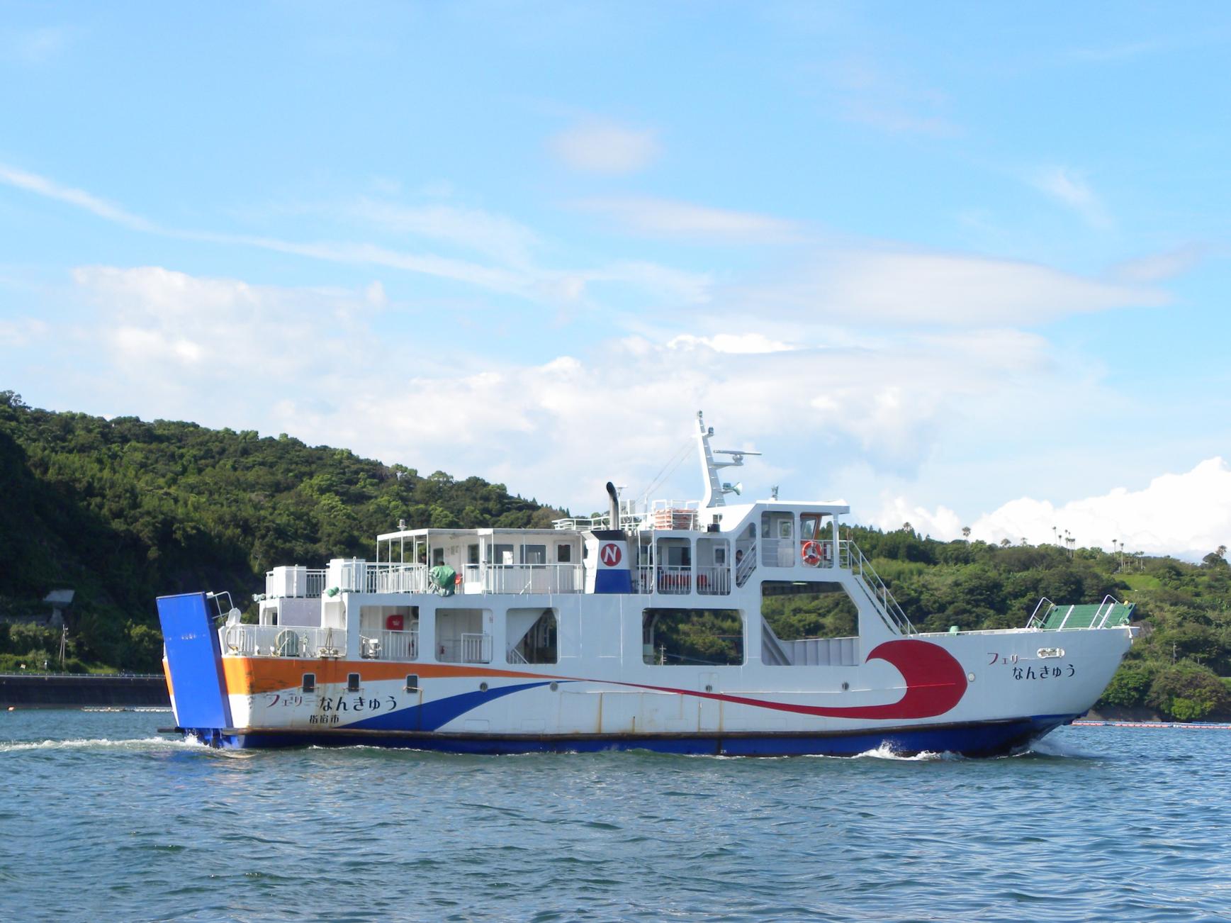 山川(指宿市)と根占(南大隅町)を繋ぐ "海の国道" フェリーなんきゅう。鹿児島県薩摩半島の山川港と大隅半島の根占港を結ぶカーフェリーです。所要時間約50分。