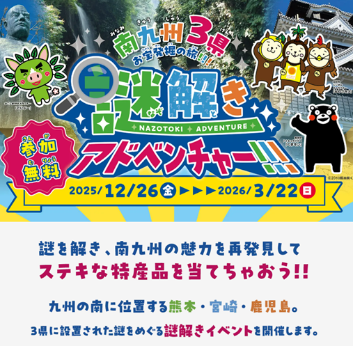 「南九州3県お宝発掘の旅!!!謎解きアドベンチャー!!!」を実施します!