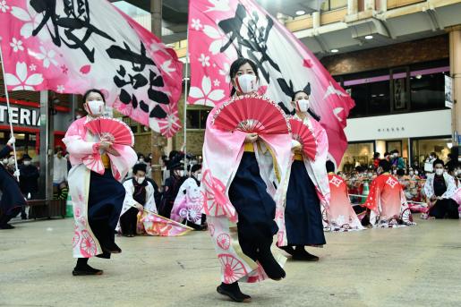 県内外から踊り手が集い、鹿児島の民謡「ハンヤ節」とよさこい踊りを織り交ぜ、鳴子片手に歌い踊る南九州最大級のお祭りです。各踊り手が、自由な楽曲に合わせて、独創的でエネルギッシュに繰り広げる演舞が楽しめます。「ハンヤ節」はルーツが奄美六調と考えられ、「ハンヤ」は、ハンエイ(繁栄)を語源にしているとも言われています。毎年4月下旬頃、清々しい季節の中で行われる鹿児島の風物詩です。