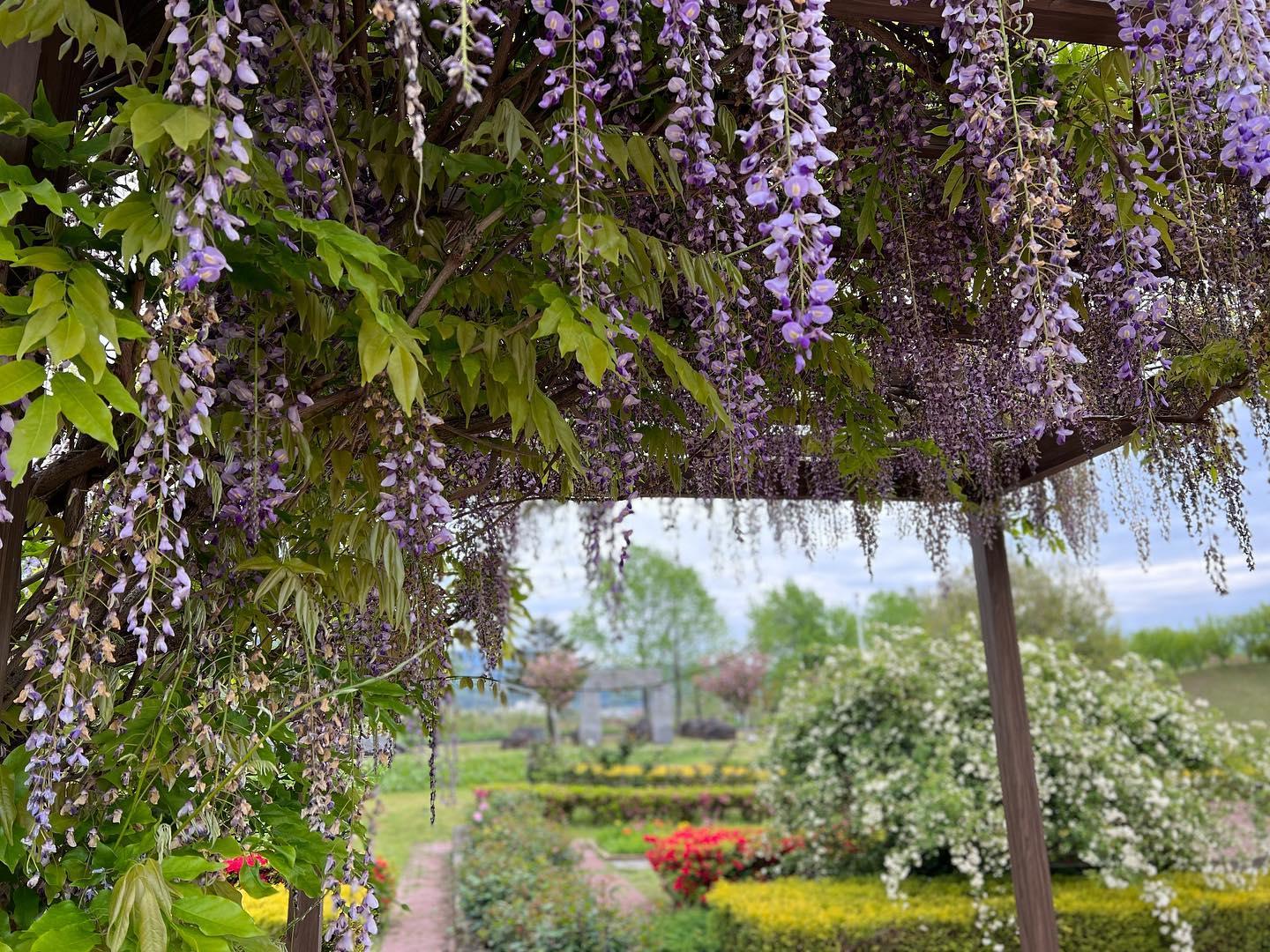 白と紫、ピンク、3色の藤のコントラストと藤の香りに癒やされます。 -