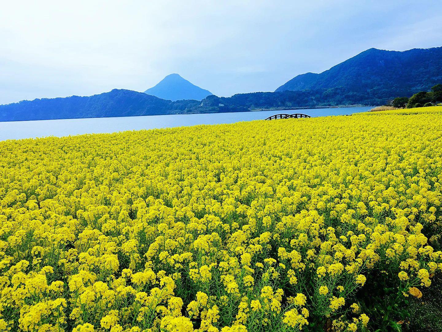 出水平野に春の潮風が吹き始めると、菜の花の香りが漂ってきます。