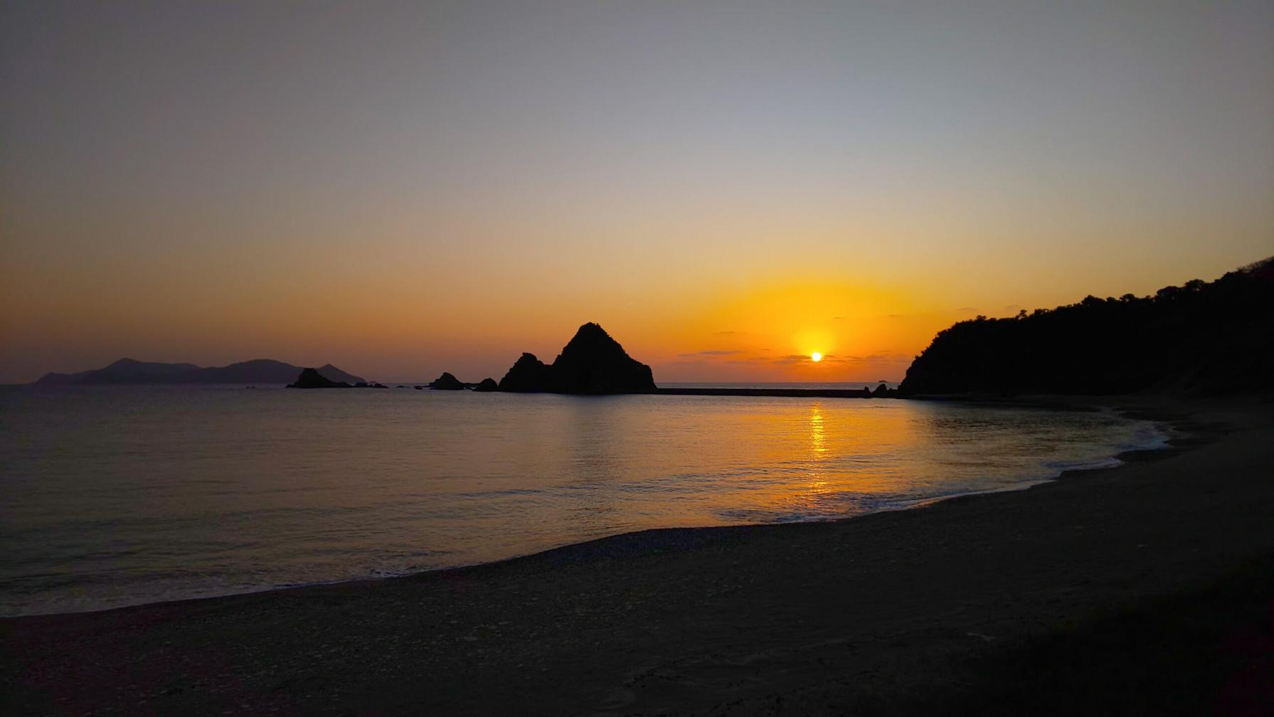 加計呂麻島の西阿室へ宿泊した際に宿前の海岸から見た夕陽です。