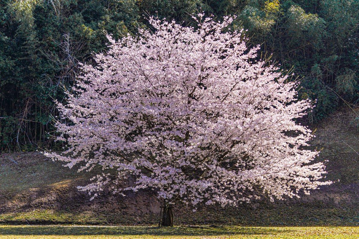 念願叶ってようやく撮れました。大きな桜の木と桜島と錦江湾に加えて、晴天と雲が交じり素晴らしい景色でした。 -