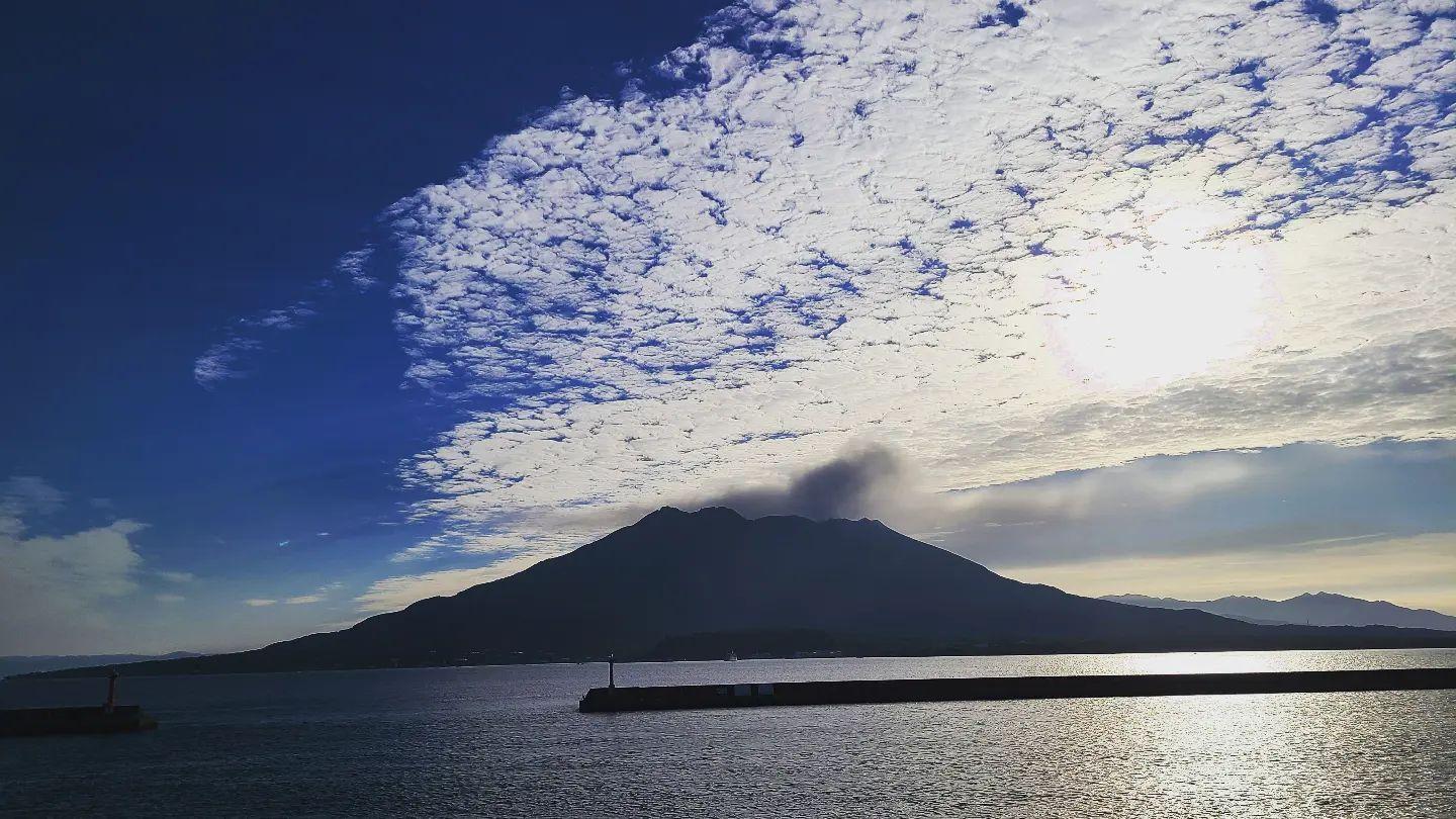 フェリーからみえるつりびとに手を振った息子、それにこたえるつりびともまた嬉しかったです。桜島はいつみても落ち着く鹿児島の風景です -