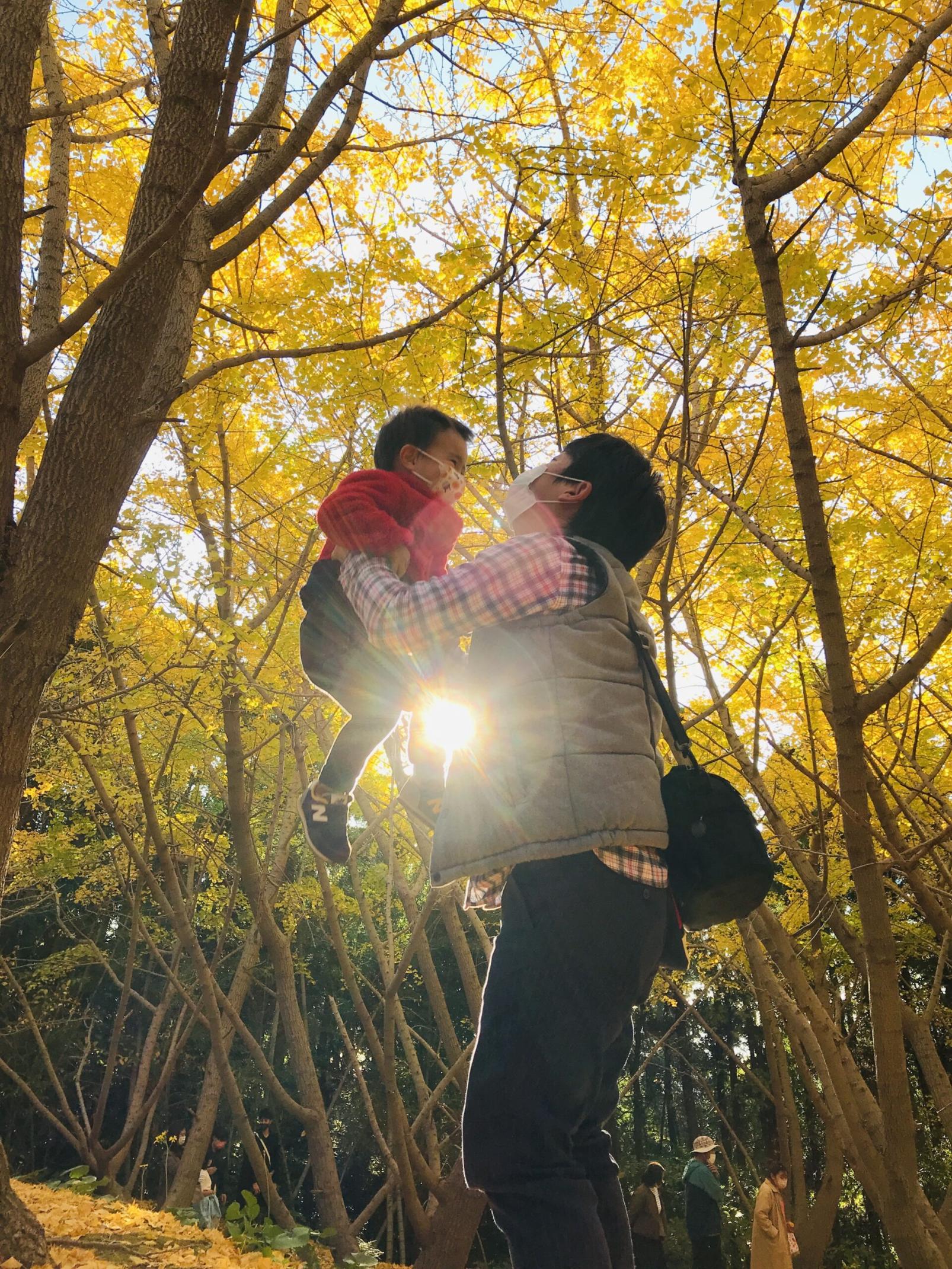 去年の11月28日、息子が生まれて初めて垂水の「千本イチョウ園」に連れて行きました。道中もたくさんの車がいて、着いた頃には駐車場はいっぱい。臨時駐車場に車を停めて、シャトルバスで向かいました。降りてしばらく歩くと、黄色に色付いた森が現れ、あちこちから「キレイ!」の声。森の中に入ると、上も下も右も左も一面黄色! 黄色い世界に大興奮の息子は楽しそうにトコトコ歩き回り、終始満面の笑みでした。また行こうね!