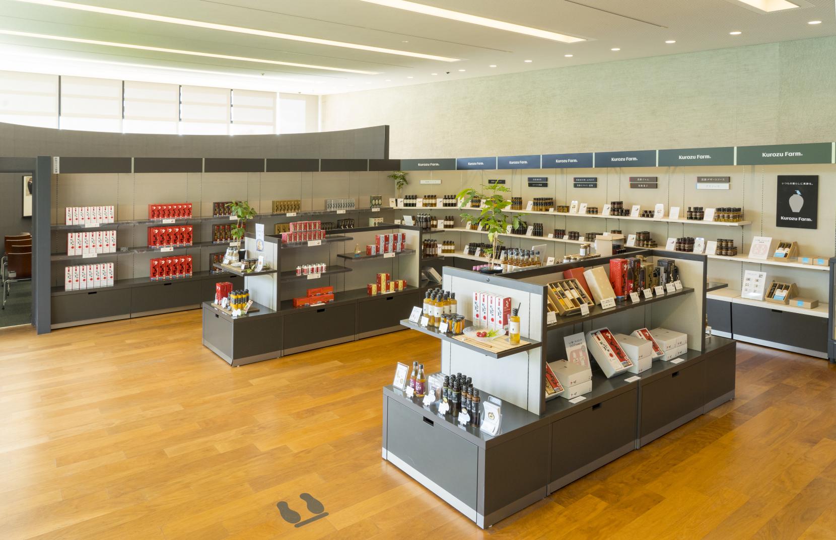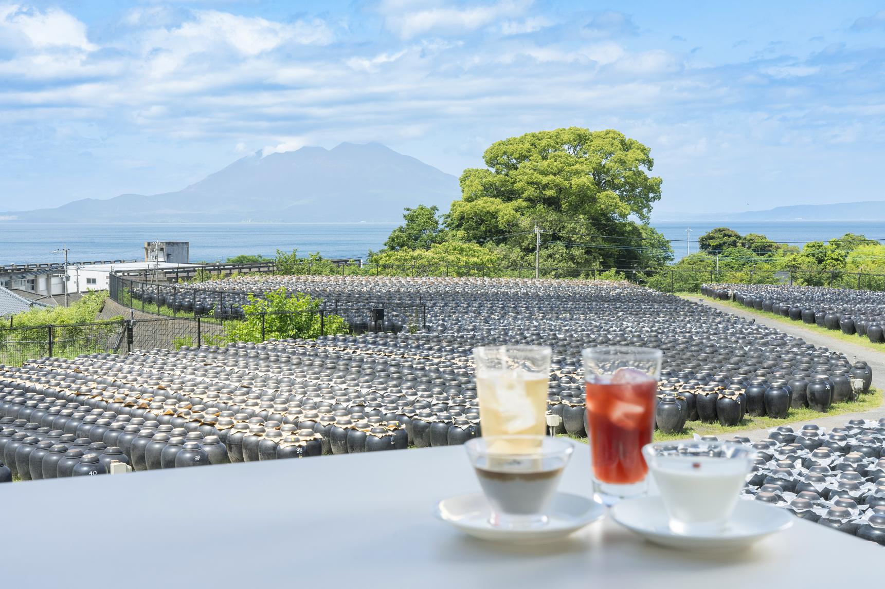 ショップでは、壺造り純米黒酢の歴史・製法について映像やパネルで紹介。黒酢商品の試飲・試食はもちろん、お買い物も楽しめます。また、併設のレストランでは、このくろずをふんだんに使用した体にやさしい料理が堪能できます。目の前に広がる広大な壺畑や桜島、錦江湾の絶景を眺めながら、ゆっくりとお過ごしください。