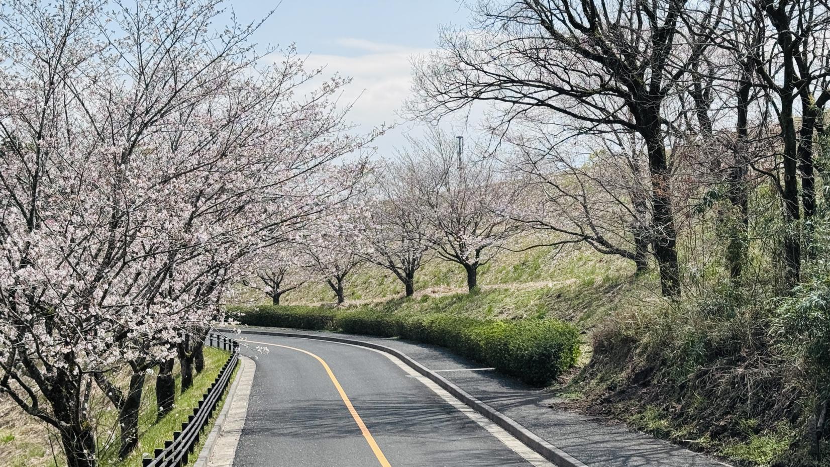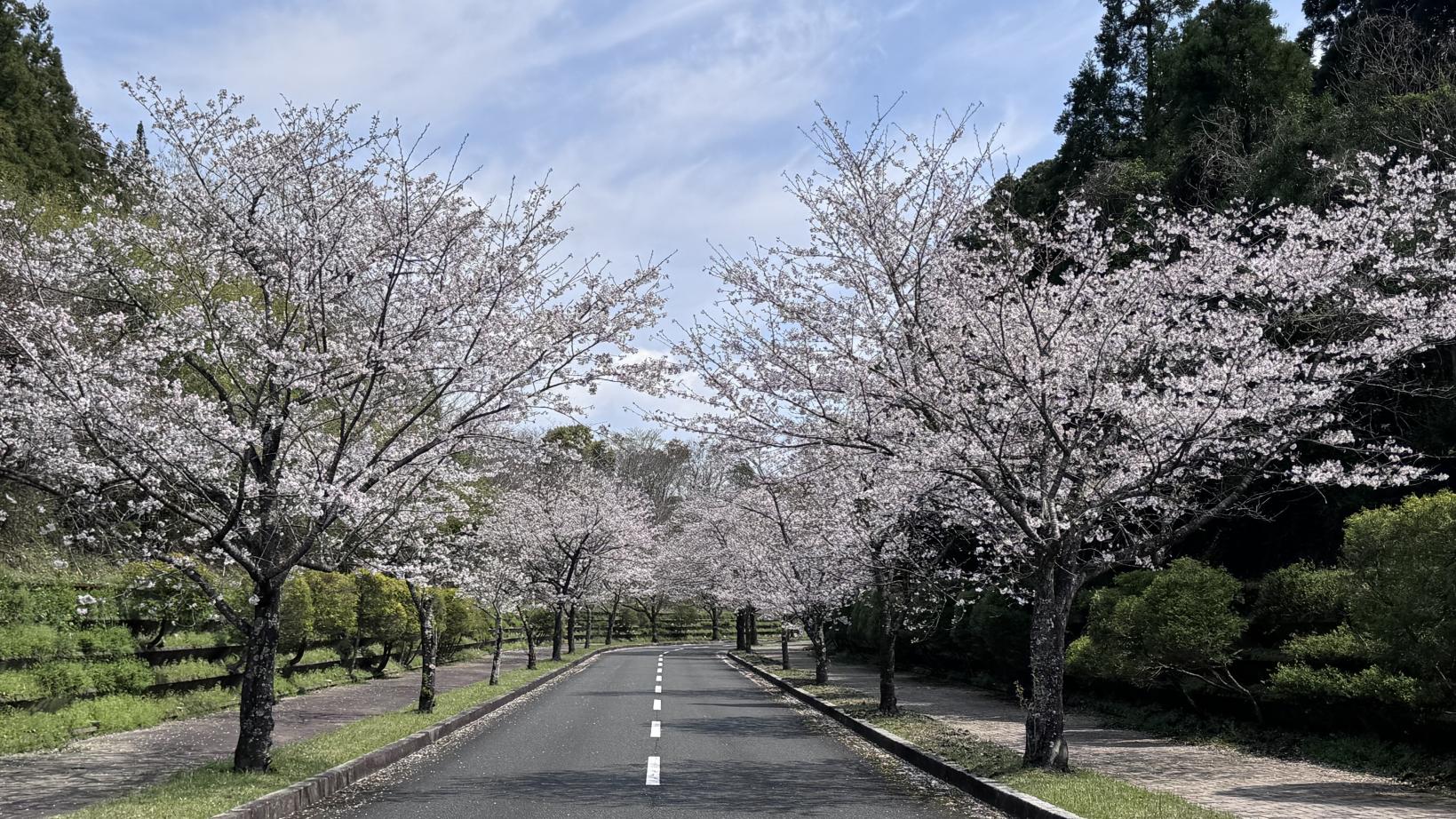 大隅総合運動公園には、陸上競技場、体育館、テニスコートなどがあり、公園内にはソメイヨシノが植えられており、見ごろになると多くの花見客が訪れています。特に駐車場のソメイヨシノは大きく、並べて植えられていることから見ごろになると美しい姿を見せてくれます。