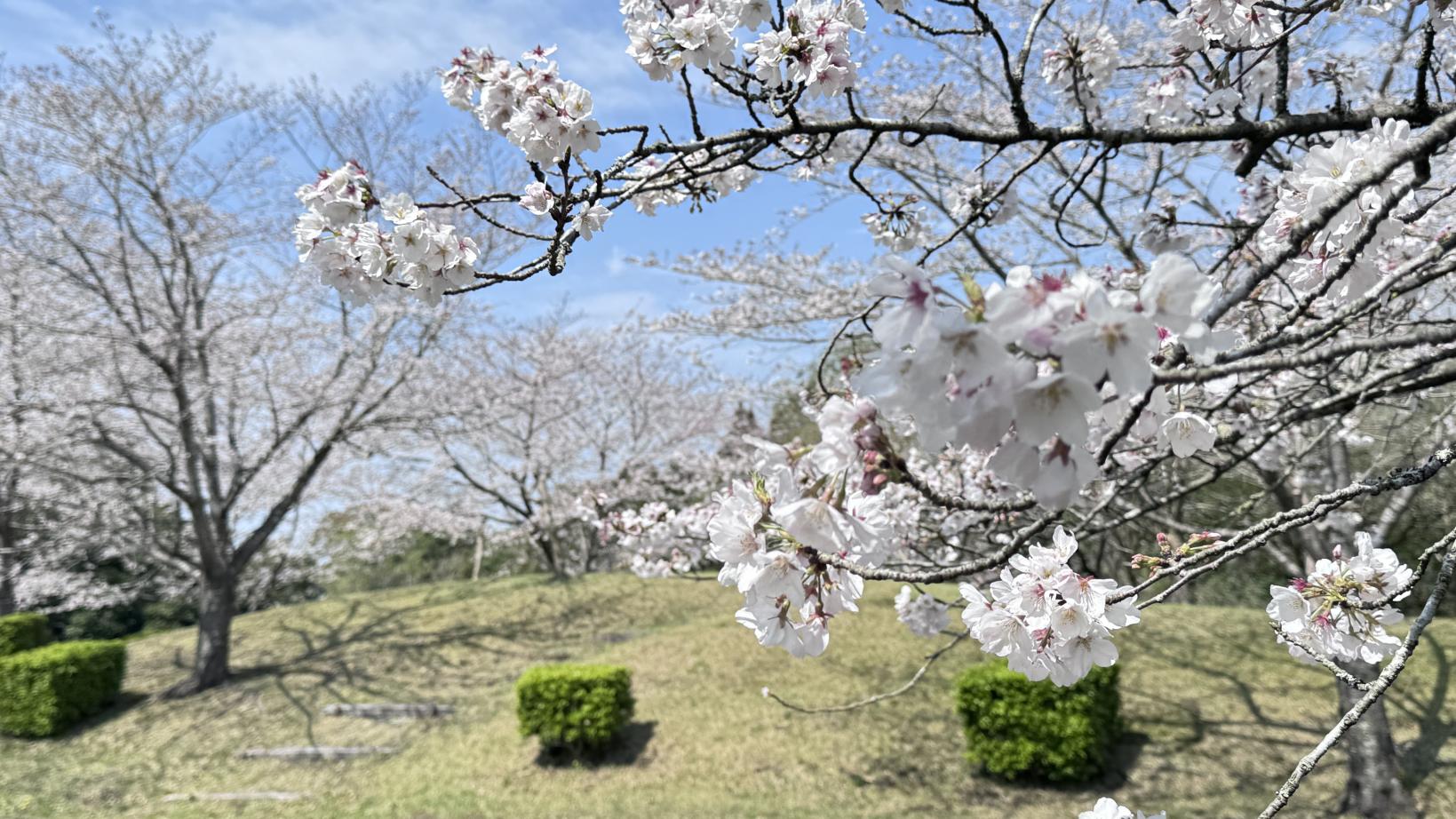 垂水市の牛根境鉄道記念公園ではソメイヨシノが咲き誇り、園内を彩ります。