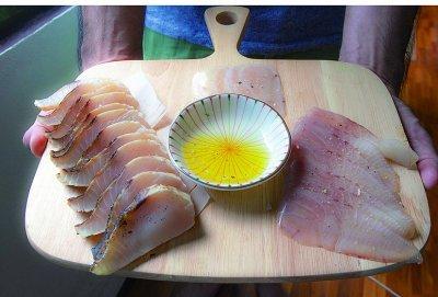 沖サワラ冷燻製炙り刺身、島がつお冷燻製生ハム、トビウオ冷燻製生ハム