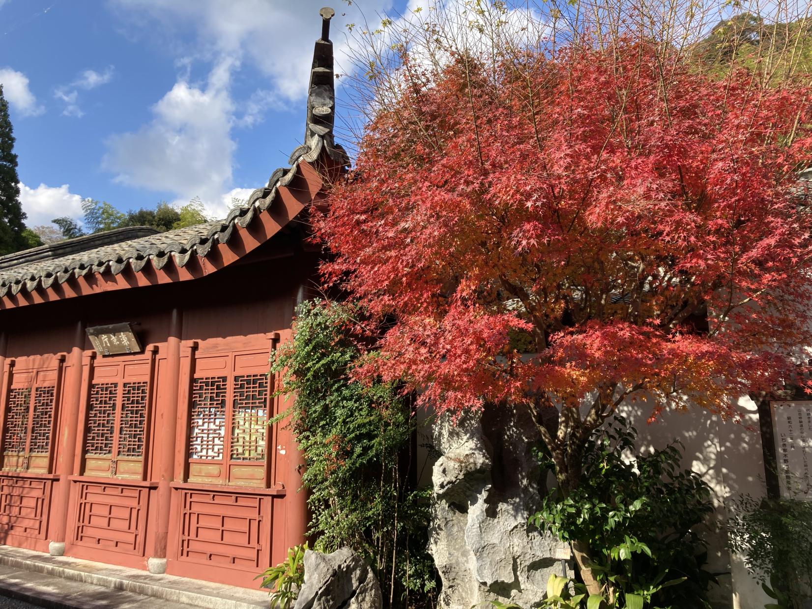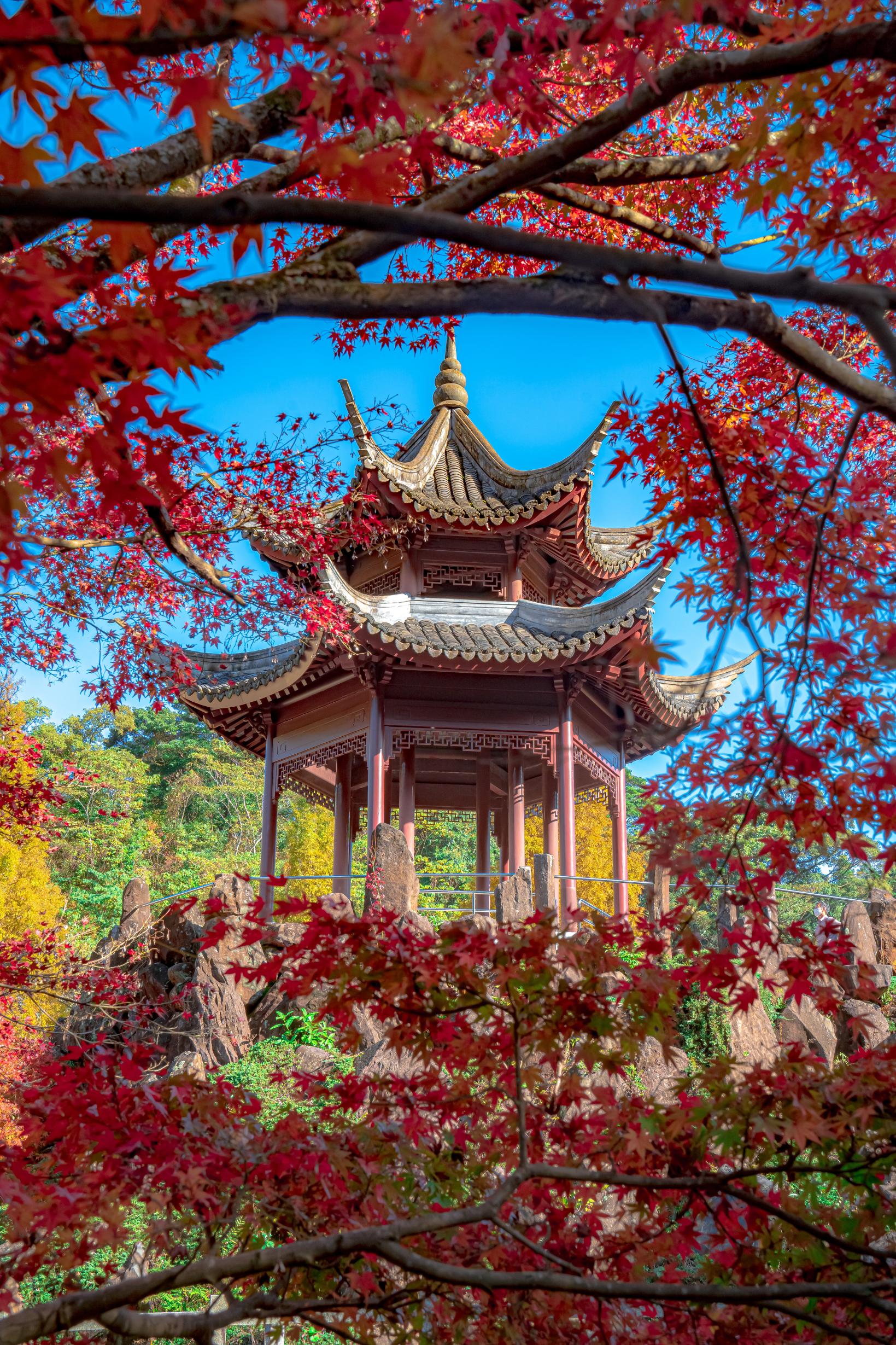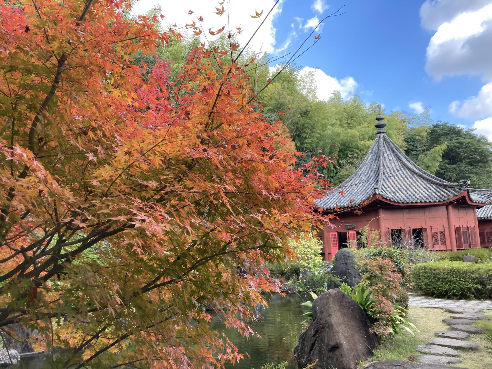 中国風庭園。秋は園内・周辺ともに、紅葉が美しい場所です。紅葉鑑賞のあとは近くの冠岳温泉もおすすめ。