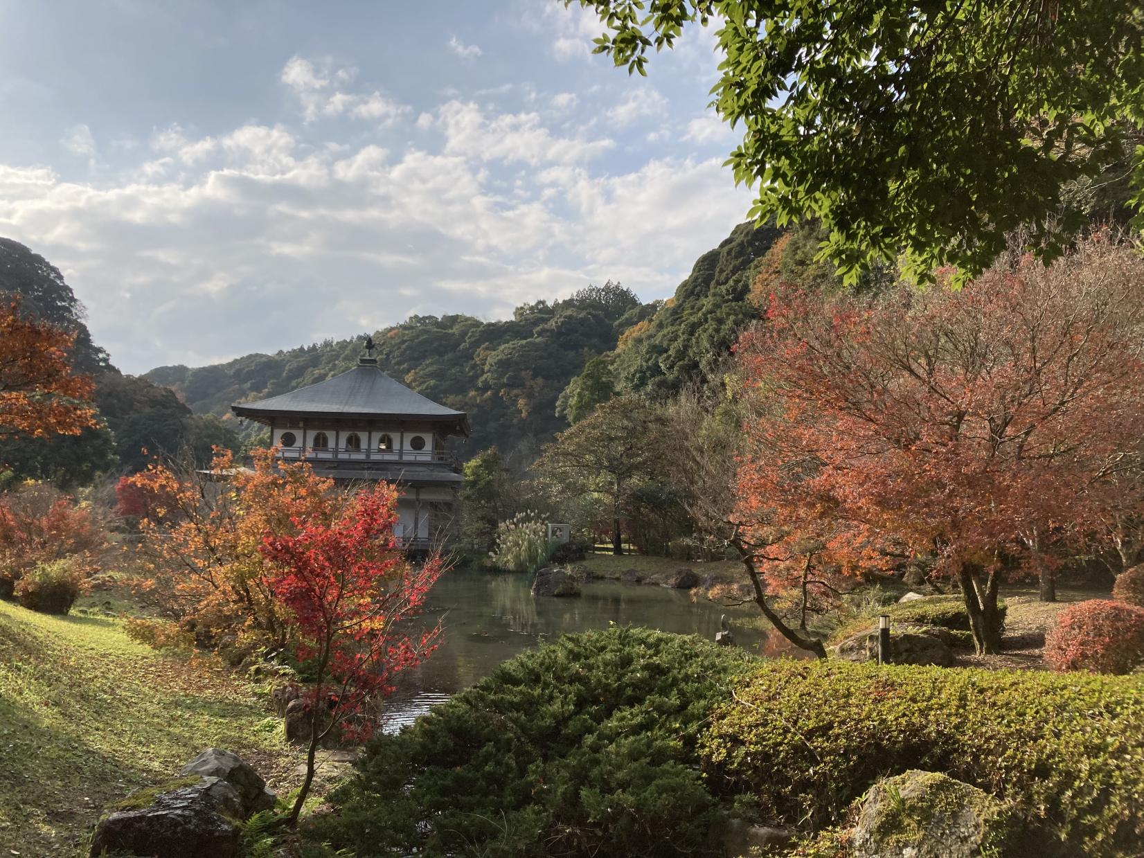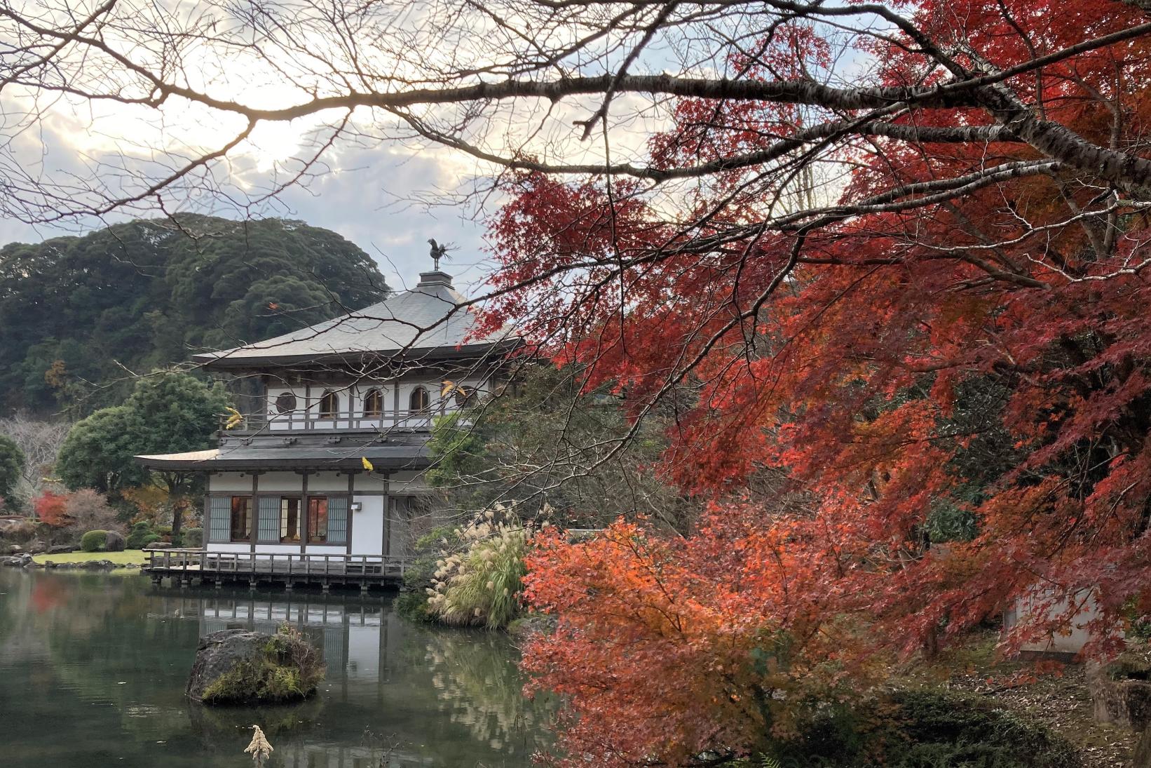 万治元年(1658)に19代島津光久によって築かれた島津家の別邸です。園内の御庭神社や、御殿前の大池周辺を中心に紅葉が楽しめます。園一帯は世界遺産に登録され、四季折々の風景と島津家の歴史を感じることが出来ます。庭園と桜島の素晴らしい景色は必見です。