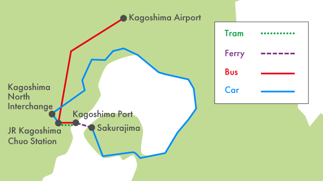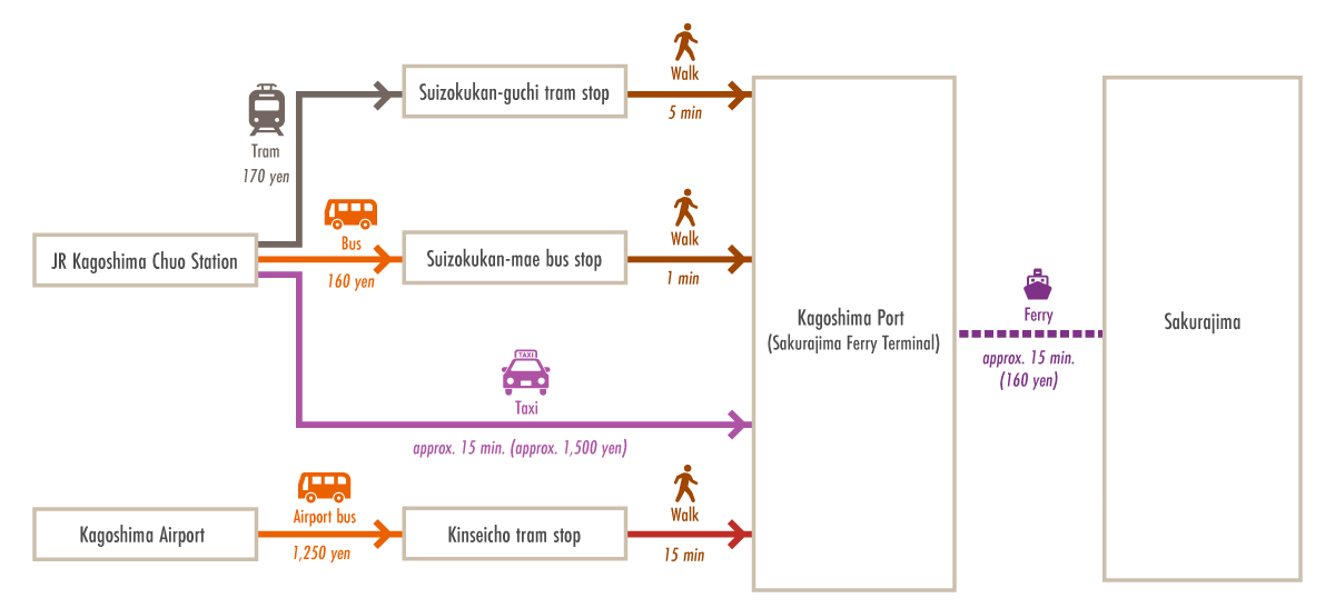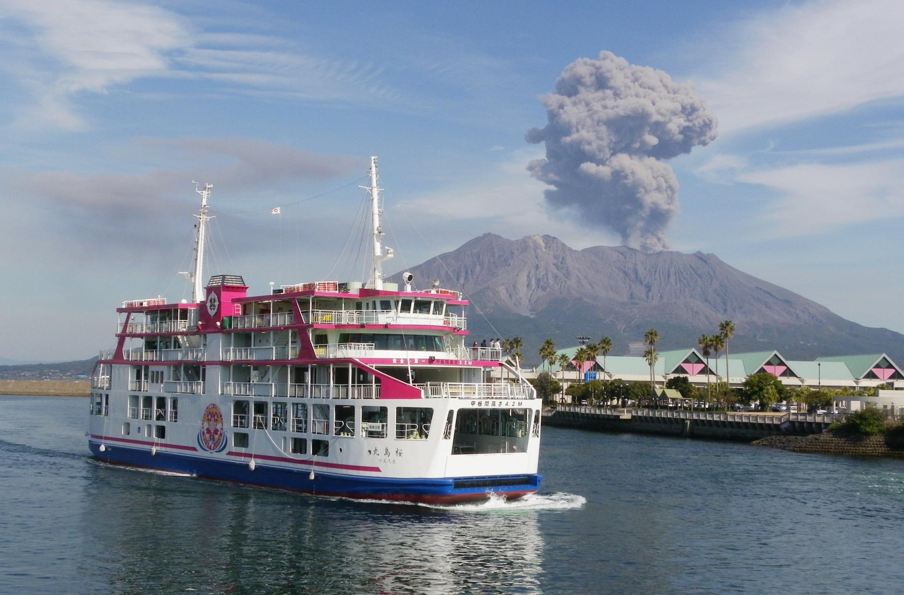Contrary to its name, Sakurajima (cherry blossom island) is a peninsula. You can reach Sakurajima by land from Osumi peninsula, or you can take the Sakurajima ferry from across Kinko Bay.