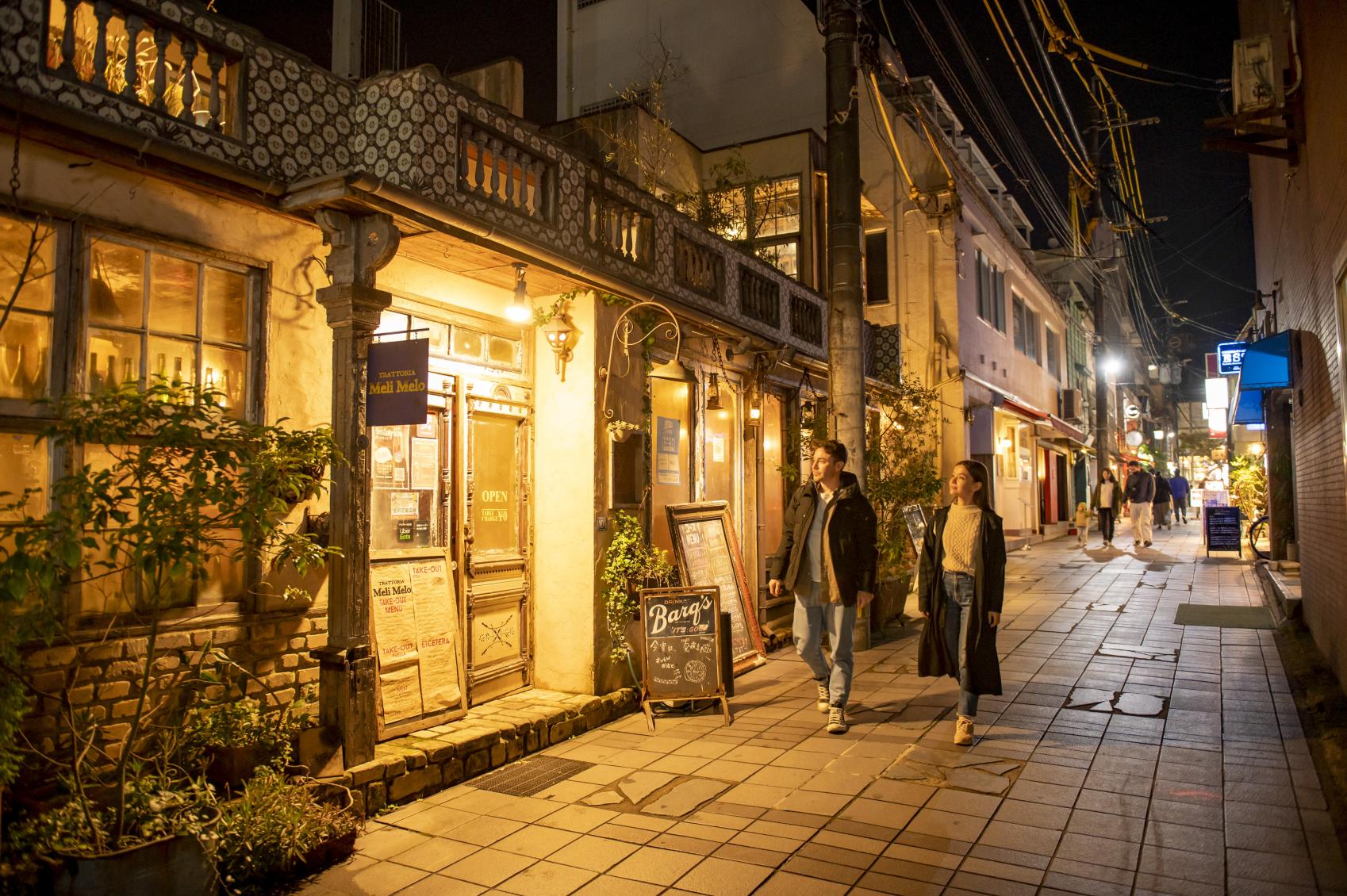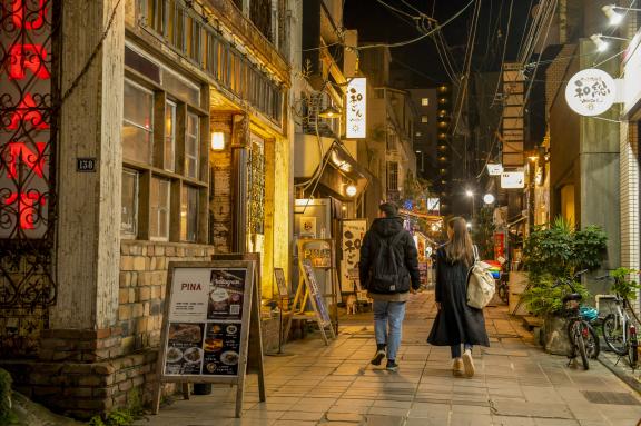At night, the hustle and bustle moves to areas of Tenmonkan like Bunka-Dori and Yamanokuchi-Dori, which are packed with bars and pubs.