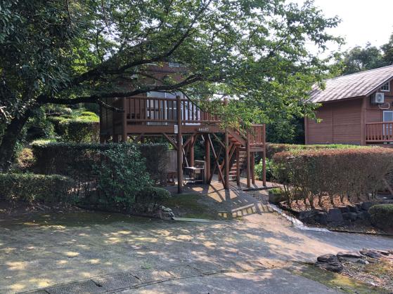 池の周りにログハウスがあり、冷暖房、バス、トイレ、冷蔵庫などの設備が整った2階建てで、湖畔の別荘といった雰囲気です。吹き抜けの1階部分にバーベキューや炊事施設があり、2階部分が宿泊施設となっています。大隅半島の中央部にあり、国道220号から南へ約2キロと交通の便もいいので、家族や友達同士で気軽に別荘気分を味わえる憩いの場となっています。