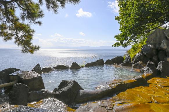 雄大な景色を楽しめる桜島の温泉郷です。火山島桜島の南岸、錦江湾に面していて、海沿いの露天風呂では掛け値なしの解放感が味わえます。