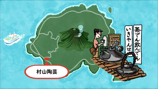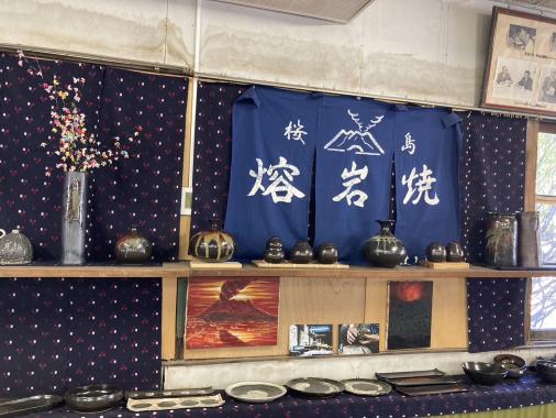 「桜島溶岩焼」の窯元。黒味の強い器は使うほどに愛着がわきます。焼酎用の陶磁器の土瓶、黒千代香(くろじょか)もあり、鹿児島焼酎好きなら手に入れたい品です。