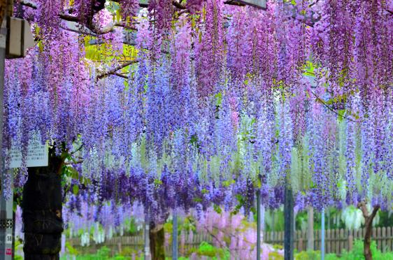 매년 4월 중순부터 5월 초에 걸쳐 보라색과 흰색의 등나무꽃이 만개합니다.