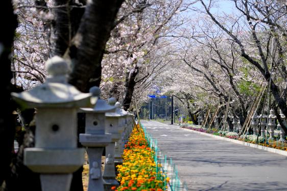 公園內以知覽特攻平和會館為中心種植著許多櫻花。公園入口處的櫻花形成大的櫻花隧道,迎接各位的到來。在晚上點亮燈光,氣氛非常浪漫。