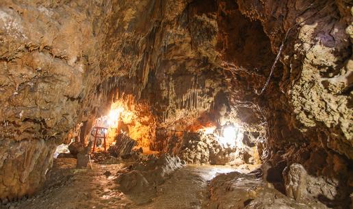構築起與論島的是隆起的珊瑚礁,大地受地下水侵蝕形成鐘乳洞。主洞120米,分洞130米,雖然規模較小,仍讓人驚嘆大自然的鬼斧神工。
