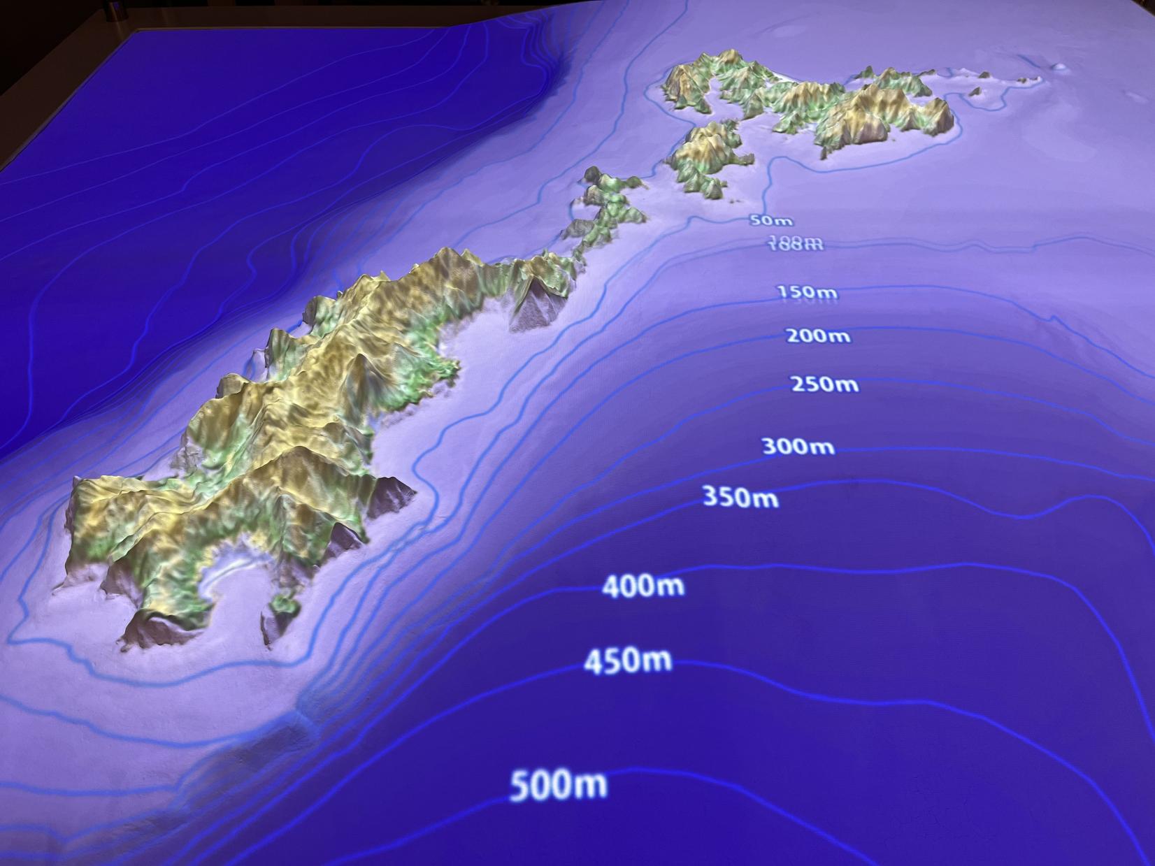透過在地居民的聲音解說,結合投影地圖,可以深入了解島嶼周圍的地質形成與自然環境。